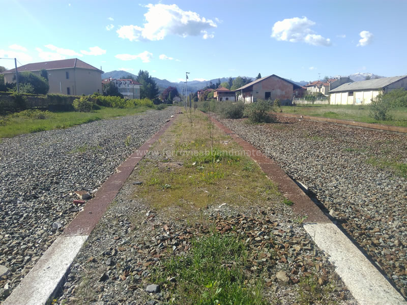 Ex-sedime, ormai disarmato, nei pressi della vecchia stazione di Gozzano, in direzione Bolzano N.: il binario a sinistra è un tratto superstite della linea Gozzano-Alzo (B. Boschetti, 2019)