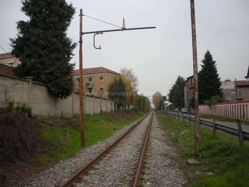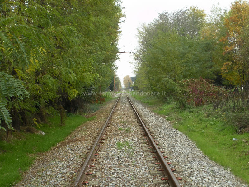 Binario ben conservato nell'abitato di Saronno: la linea aerea era stata asportata già molti anni prima della chiusura (R. Rovelli, 2012)