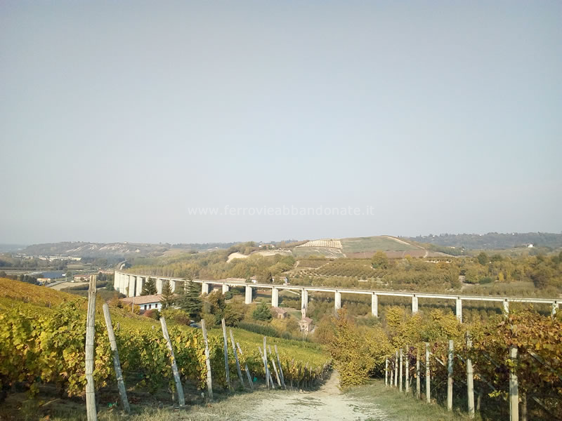 L'imponente viadotto Castagnole, che dal 1988 ha sostituito parte del tracciato originario tra Motta di Costigliole e Castagnole delle Lanze (T. Antoniotto, 2015)