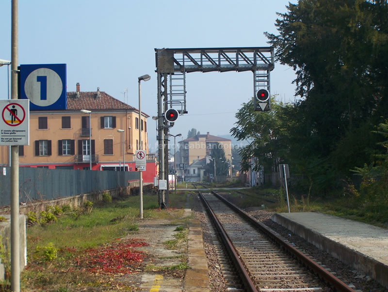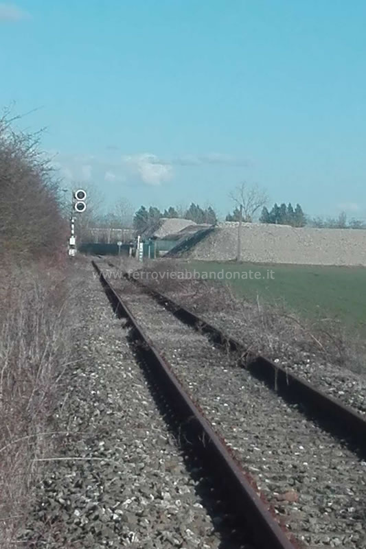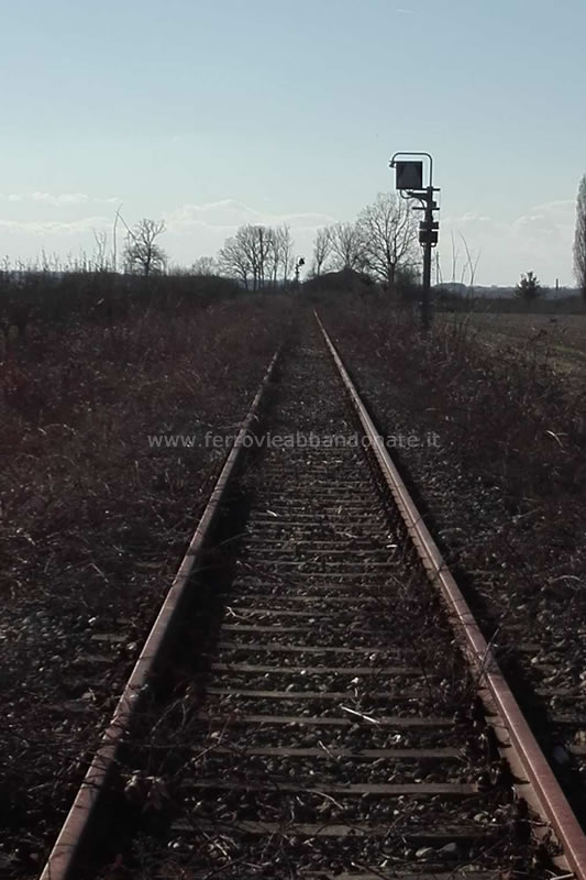 Binario nelle vicinanze di Nizza Monferrato, con i segnali ancora accessi (D. D'Ercole, 2018)