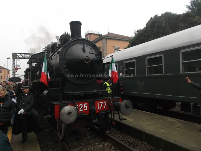 Treno turistico trainato dalla locomotiva a vapore 625 177 alla stazione di Canelli, in occasione della riapertura parziale della linea per uso turistico (T. Antoniotto, 2019)