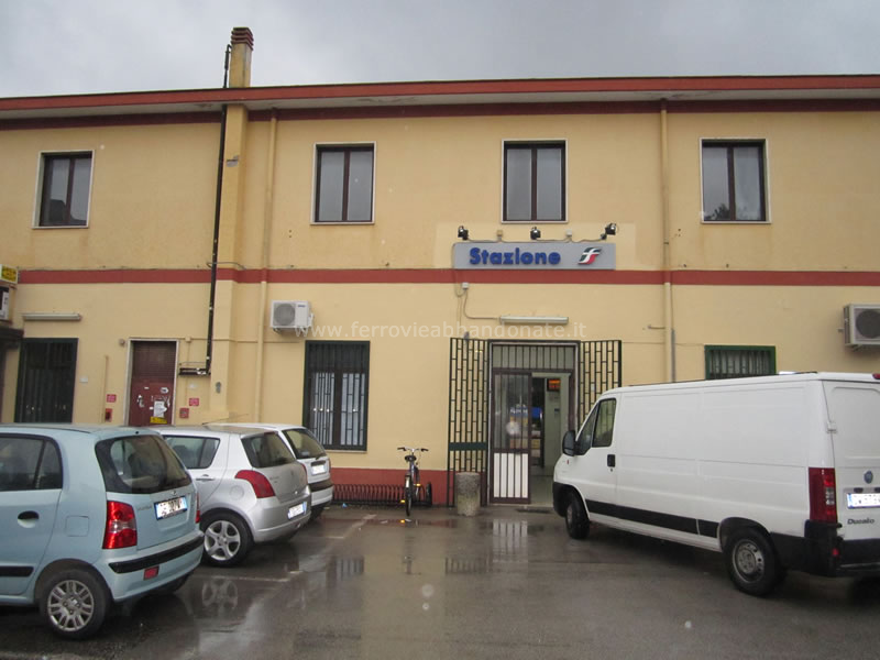 Altra immagine del fabbricato viaggiatori di Sessa Superiore, con il nome della stazione ancora ben leggibile (A. Stigliani, R. Pizzacalla, 2016)