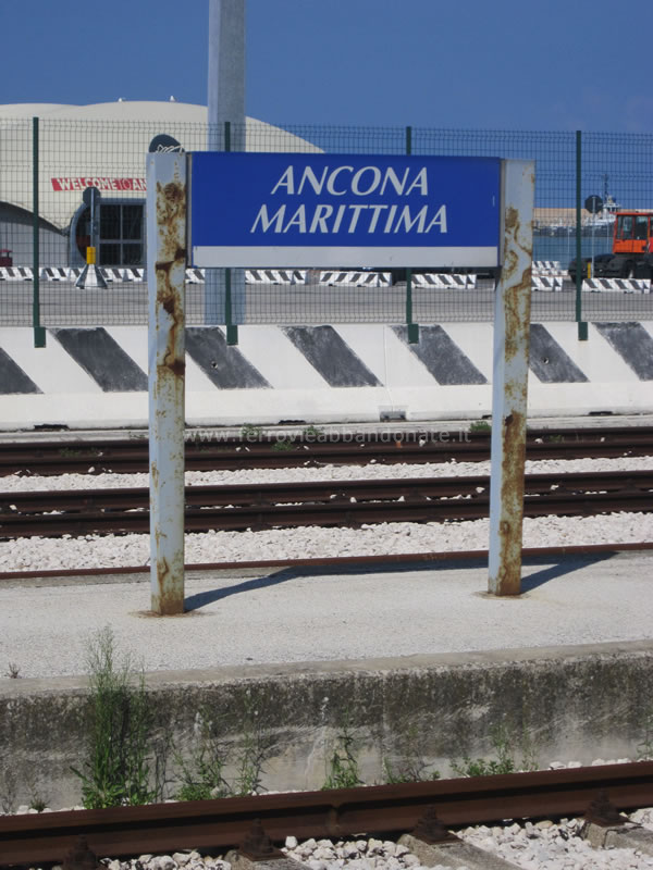Cartello indicatore della stazione di Ancona Marittima (A. Stigliani, 2016)