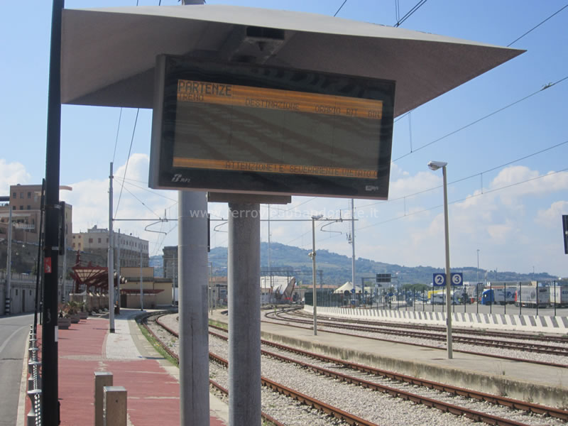 Tabellone partenze di Ancona Marittima, ancora acceso ma senza indicazione di alcun treno (A. Stigliani, 2016)