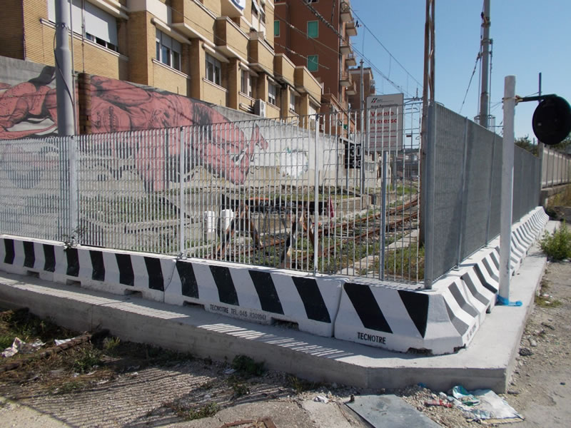 Recinzione costruita lungo il binario per Ancona Marittima nei pressi del PL 0+824 dopo la soppressione della linea (U. Polizio, 2016)