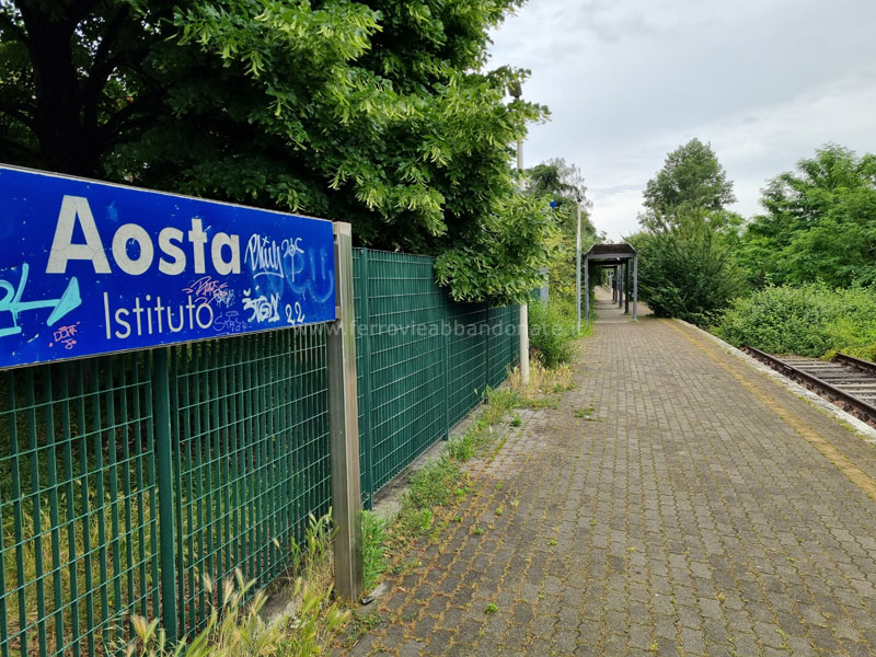 Marciapiede e pensilina della fermata di Aosta Viale Europa, attivata nel 2002 (A. Stigliani, 2022)