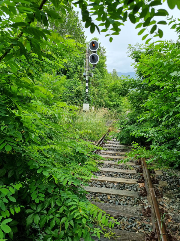 Stazione di Villeneuve, con il binario nascosto dalla rigogliosa vegetazione infestante (A. Stigliani, 2022)