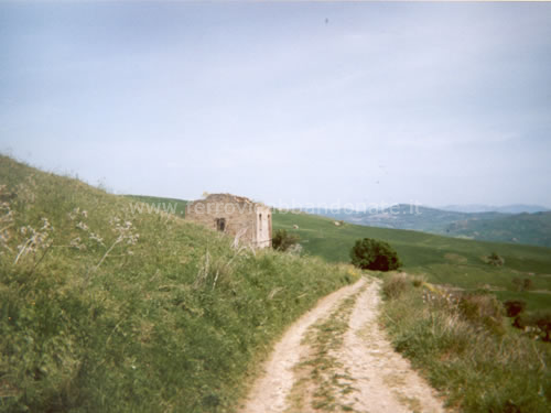 Tratto di ex-sedime, usato come strada campestre, tra Lercara Friddi e la stazione di Lercara Bassa (G. Senes, 2005)
