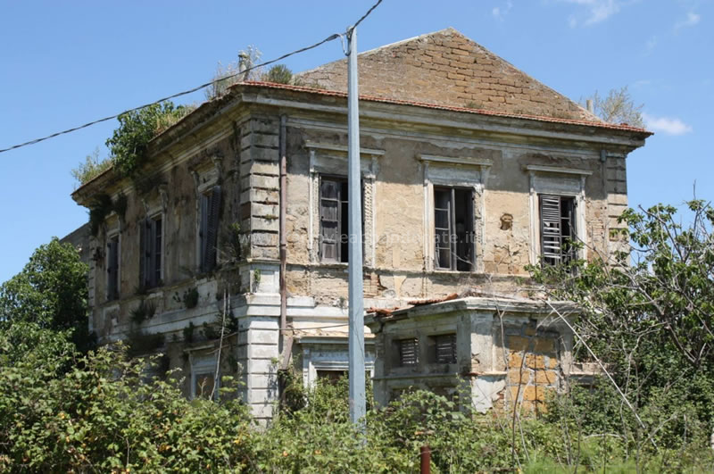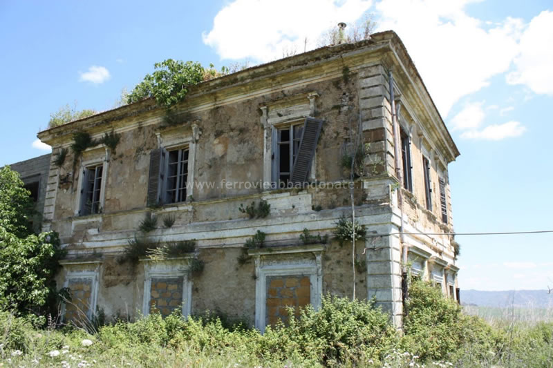 Altra immagine dell'ex-stazione di Cianciana, con il fabbricato viaggiatori avvolto dalla vegetazione infestante (L. Barbiera, 2016)