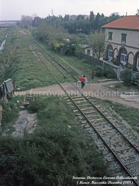 Ex-fermata di Stagno, con il binario ancora armato e saltuariamente percorso da tradotte in regime di manovra (M. Mazzotta, 1988)
