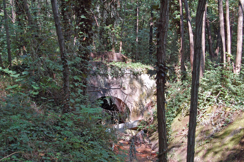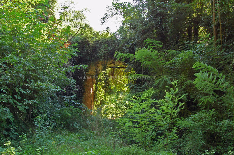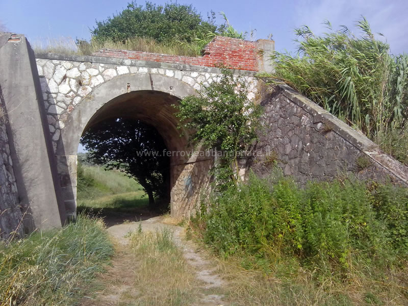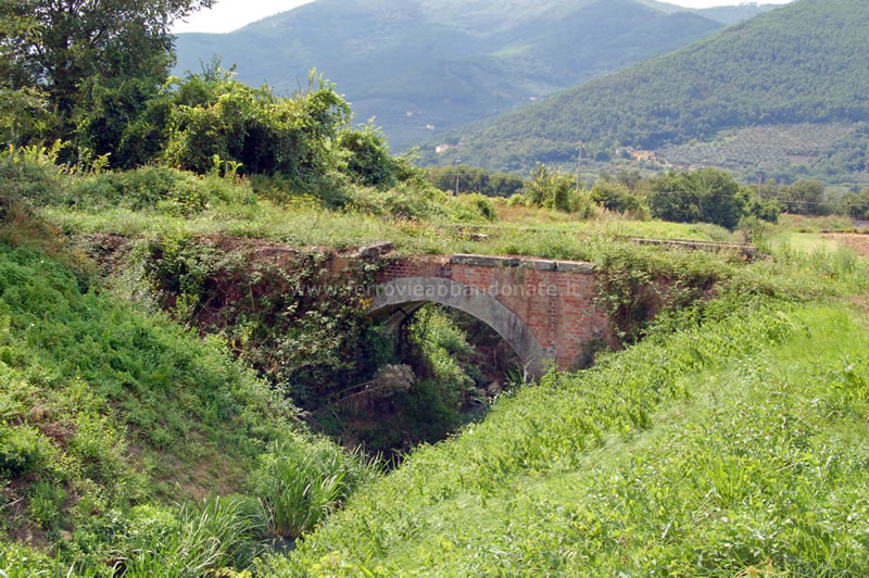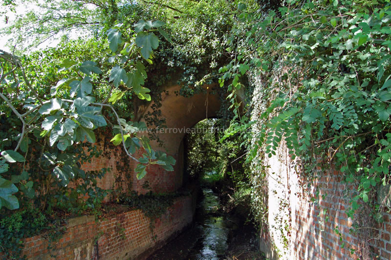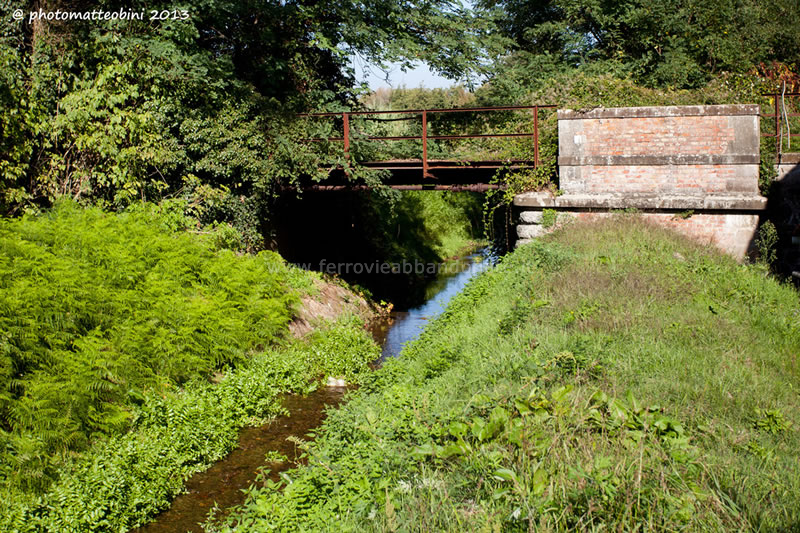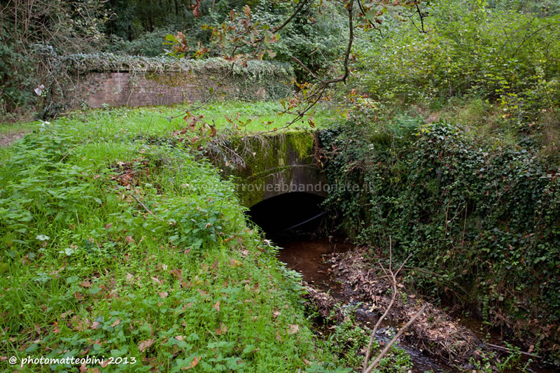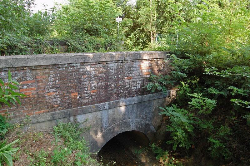 Vestigia del ponte sul canale Ozzeretto, di cui sono rimaste solo le spalle, tra Lucca e la stazione di Toringo-Parezzana (A. Rossi, 2014)