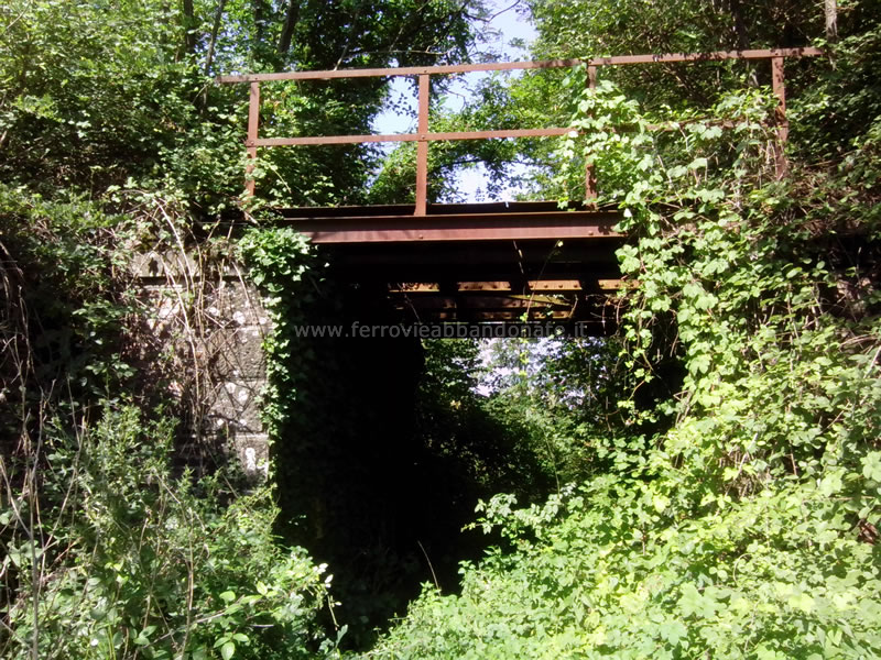 Resti di un piccolo ponte in ferro si intravedono tra la vegetazione tra Toringo-Parezzana e S. Leonardo-S. Andrea (A. Rossi, 2014)