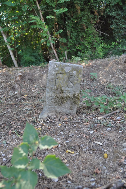 Cippo FS ancora evidente lungo l'ex-sedime tra Toringo-Parezzana e S. Leonardo-S. Andrea (A. Rossi, 2014)