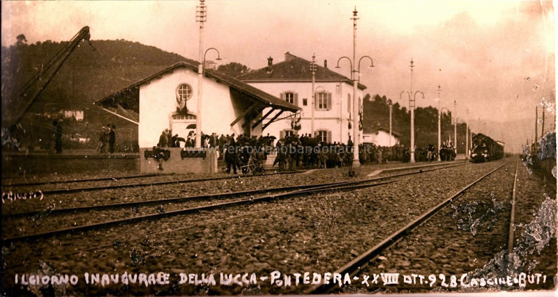 Fotografia storica della stazione di Buti-Cascine nel giorno dell'inaugurazione della linea, il 28 ottobre 1928 (archivio C. Parducci Overfoto)