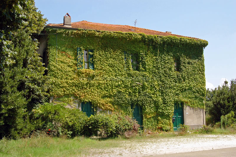 Ex-stazione di Buti-Cascine, con la facciata coperta da rampicanti (A. Rossi, 2014)
