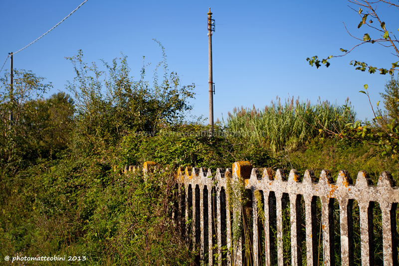 Staccionata ferroviaria ancora evidente nei pressi della ex-stazione di S. Ginese (M. Bini, 2013)