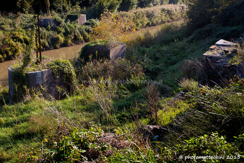 Resti dei piloni del ponte in ferro sul canale Imperiale, nei pressi di Cascine di Buti (M. Bini, 2013)