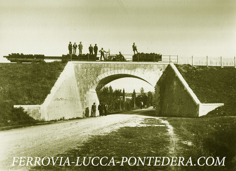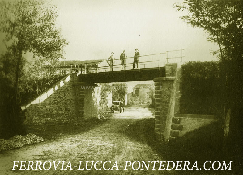 Immagine d'epoca del sovrappasso in ferro alla progressiva 5,436, tra le stazione di Toringo-Parezzana e S. Leonardo-S. Andrea (Fonte: <a href='http://www.ferrovia-lucca-pontedera.com' target='_blank'>www.ferrovia-lucca-pontedera.com</a>)