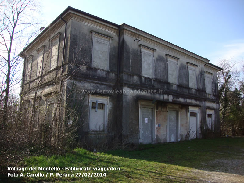 Fabbricato viaggiatori della ex-stazione di Volpago, in stato di abbandono (A. Carollo, P. Perana, 2014)