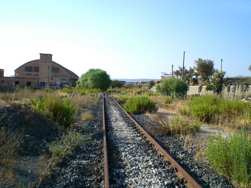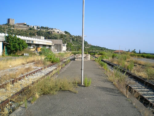 Marciapiede e binari della ex-stazione di Paternò, in stato di abbandono (R. Quadrelli, 2010)