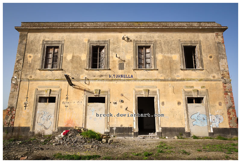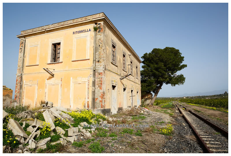 Fabbricato viaggiatori dell'ex-stazione di Ritornella, in evidente stato di degrado (G. Marletta, 2012)