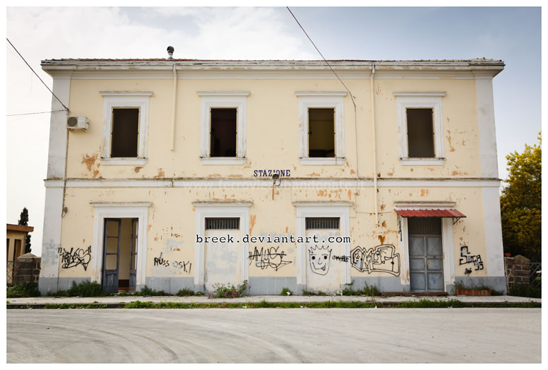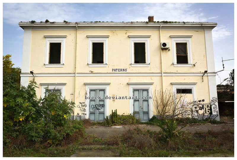Fabbricato viaggiatori della ex-stazione di Paternò, ristrutturato e poi nuovamente abbandonato (Breek, 2016)