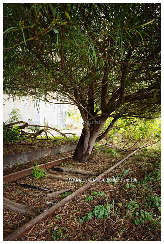 Albero cresciuto tra le rotaie all'ex-stazione di Paternò (Breek, 2016)