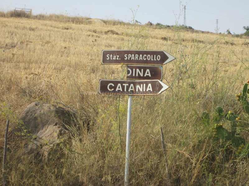 Segnaletica stradale ancora indicante la ex-stazione di Sparacollo, soppressa da oltre 40 anni (S. Mazza, 2014)