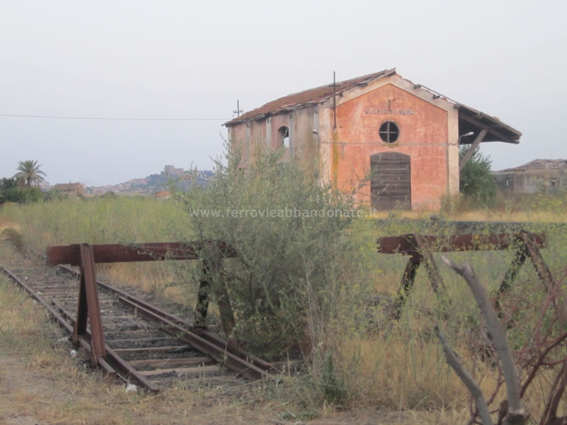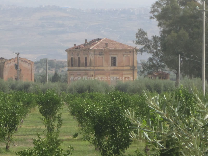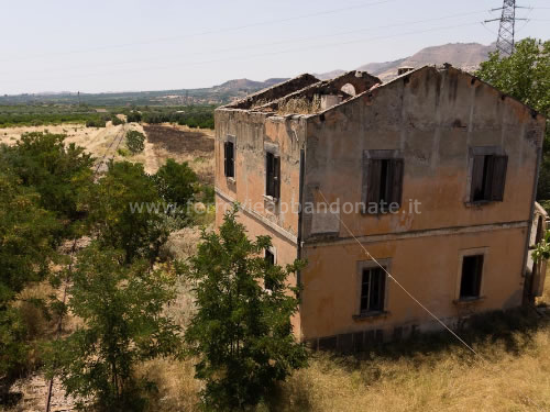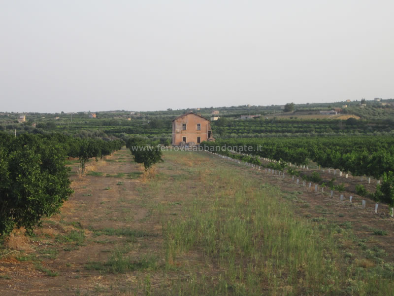 Altra immagine della ex-stazione di Leto e del relativo magazzino merci, abbandonata in mezzo agli agrumeti (S. Mazza, 2014)