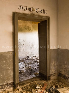 Ex-stazione di Leto, con gli ingressi murati e il tetto parzialmente crollato (S. Mazza, 2014)