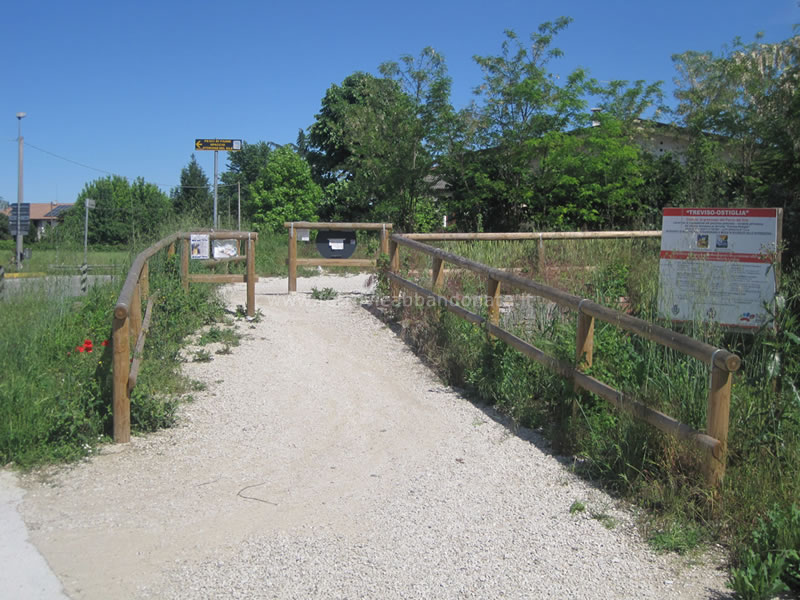 Inizio del tratto di ex-sedime recuperato come percorso ciclo-pedonale a Quinto di Treviso, in località Boiago (F. Calderan, 2014)