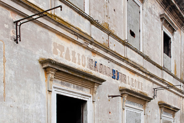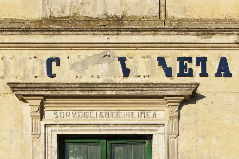 Particolare della ex-stazione di Casaleone, con il nome ancora leggibile (L. Linthout, 2013)
