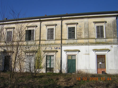 Facciata esterna della ex-stazione di Cologna Veneta, in stato di abbandono (G. Ferrari, 2009)