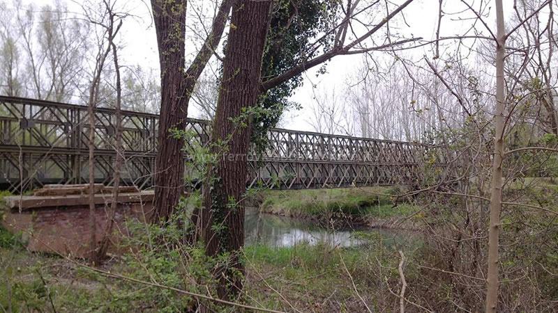 Passerella ciclo-pedonale sul fiume Sile tra Quinto di Treviso e Badoere-Levada, realizzata in sostituzione del vecchio ponte ferroviario distrutto nel '44 (A. Cipria, 2015)