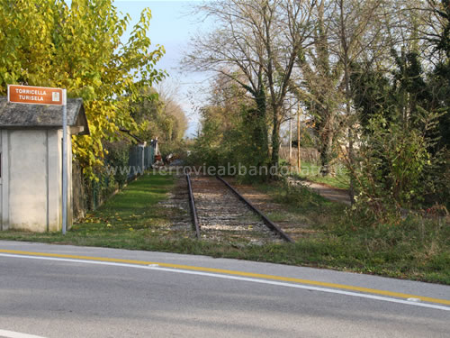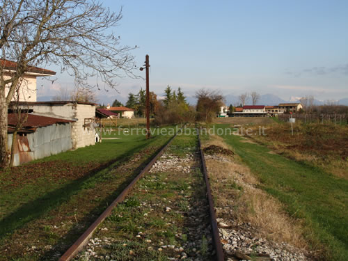 Ex-stazione di San Giorgio della Richinvelda: il binario è ancora ben evidente, ma la presenza di vegetazione arborea tra le rotaie testimonia il lungo periodo di abbandono (G. Altavilla, 2009)