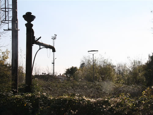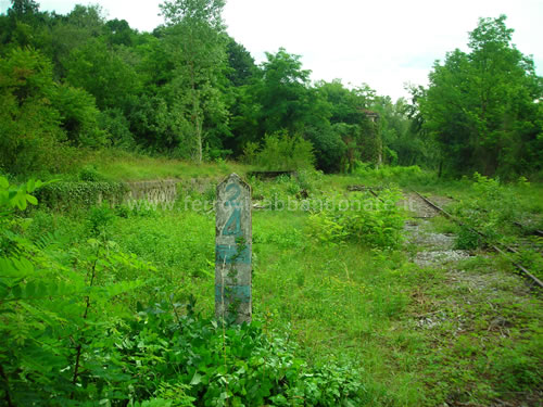 Zona di carico e scarico merci della ex-stazione di Valeriano, invasa dalla vegetazione spontanea (G. Altavilla, 2009)