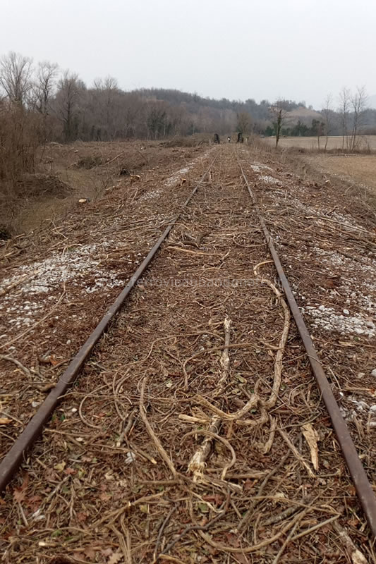 Binario ripulito dalla vegetazione infestante in vista del recupero come percorso ciclopedonale tra Valeriano e Spilimbergo (G. Altavilla, 2021)