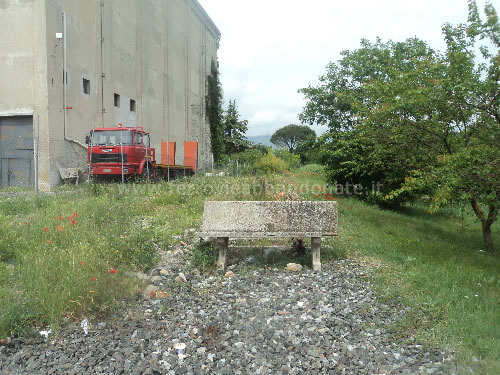 Ex-stazione di Volterra: sullo sfondo il piazzale, oggi utilizzato dalle autolinee, e ciò che resta della rimessa locomotive (L. Cecconi, 2012)