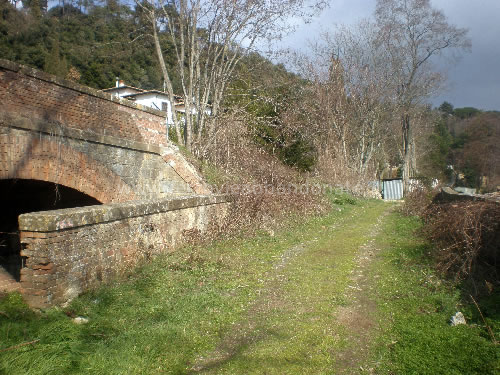 Ponti ferroviari in corrispondenza del regresso a Volterra: a destra la linea che sale da Saline, a sinistra il tronco che entra alla stazione di Volterra (L. Cecconi, 2012)