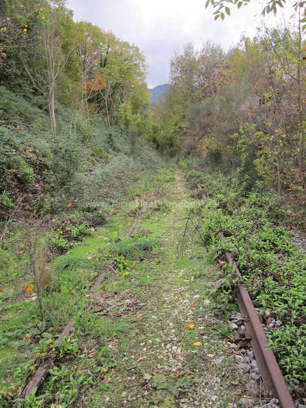 Sedime ancora armato ma invaso dalla vegetazione spontanea nei pressi della ex-stazione di Galdo (O. Brogna, 2009)