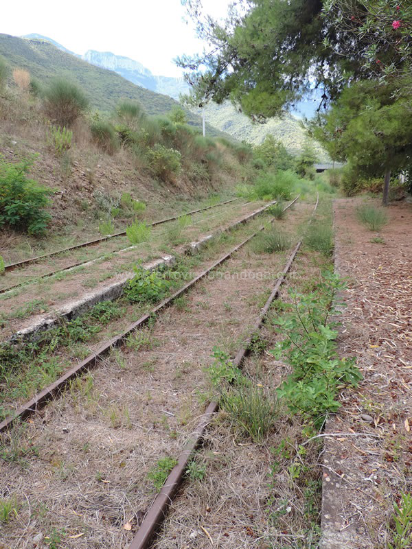 Binari della stazione di Lagonegro, invasi dalla vegetazione spontanea (A. Stigliani, 2016)