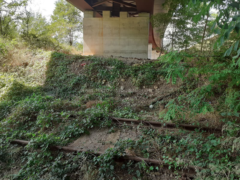Sede ferroviaria ancora armata nei pressi dell'ex-fermata di Castelluccio (O. Brogna, 2021)