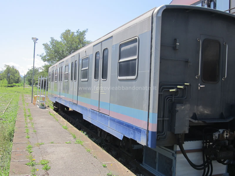 Ex-stazione di Montesano-Buonabitacolo, con un vagone (probabilmente di una metropolitana) trasformato in ristorante (A. Stigliani, 2018)