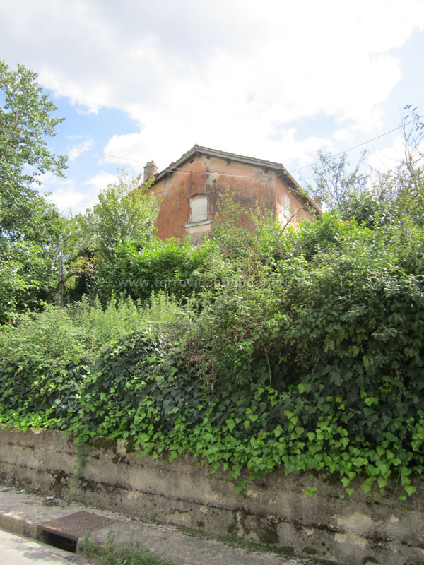 Fabbricati di servizio della ex-stazione di Padula, avvolti dalla vegetazione spontanea (A. Stigliani, 2016)