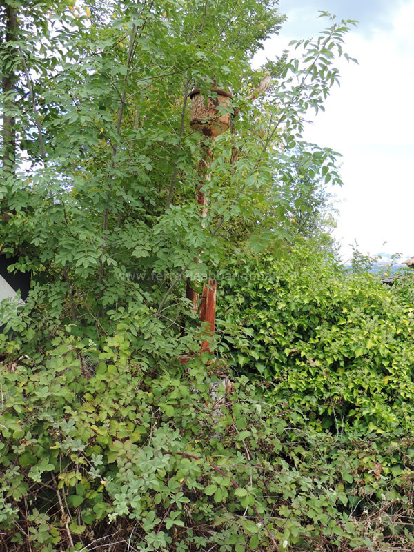 Vestigia di un passaggio a livello nascoste dalla vegetazione nei pressi della stazione di Petina (A. Stigliani, 2016)