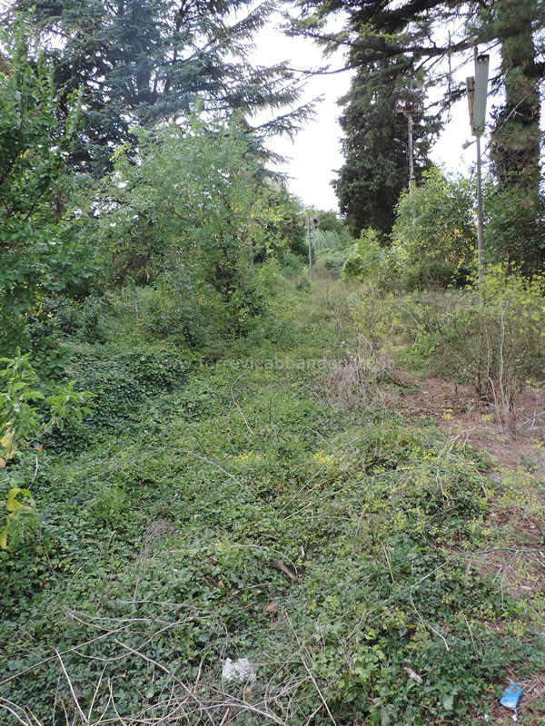 Binario ricoperto dalla vegetazione. Sullo sfondo l'ex-stazione di Galdo (O. Brogna, 2009)