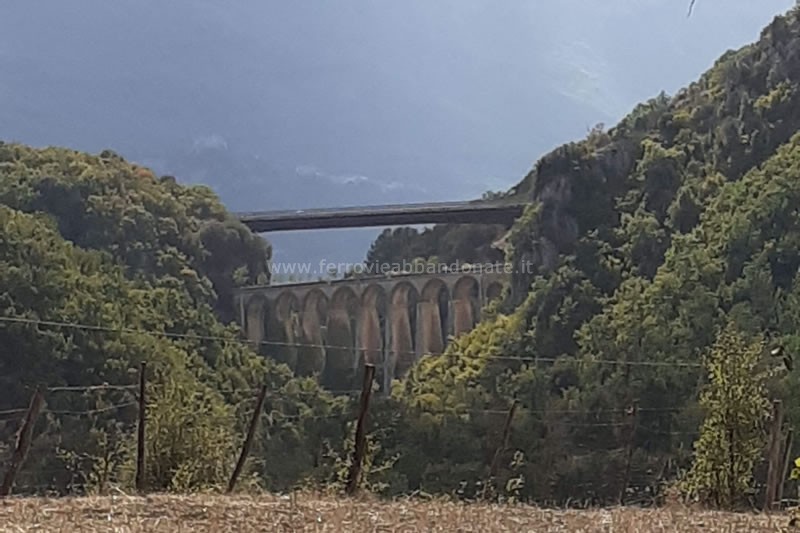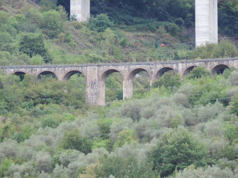 Viadotto sul torrente Calcina, con 10 archi di 10 m ciascuno, tra la fermata di Castelluccio e la stazione di Galdo (O. Brogna, 2021)