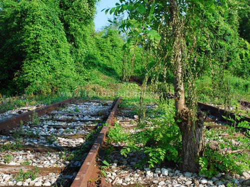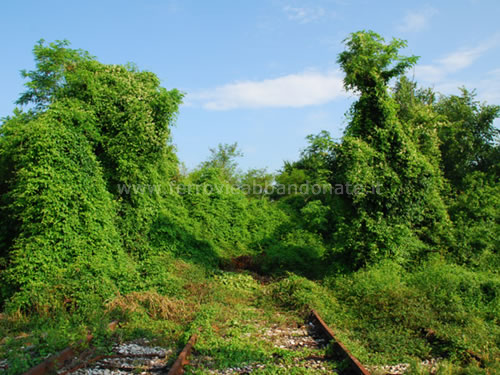 Le rotaie a tratti completamente coperte dalla vegetazione (L. Tiriticco, 2008)