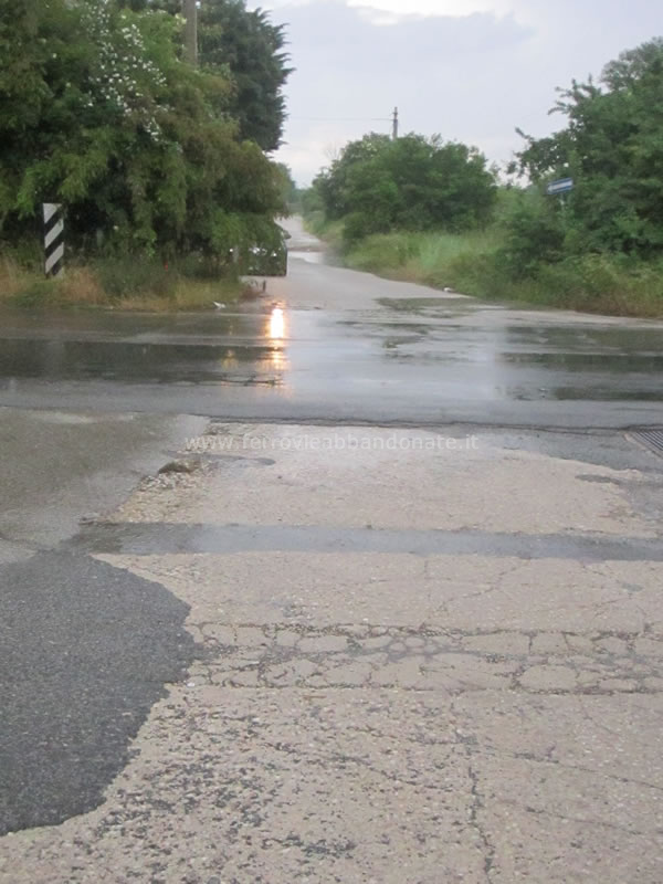 Ex-passaggio a livello con la SP 600 nei pressi della stazione di Artena-Valmontone; il vecchio sedime ha lasciato il posto ad una strada carrabile (A. Stigliani, 2017)