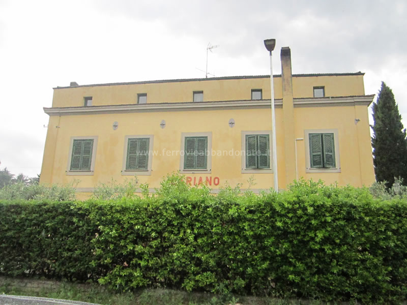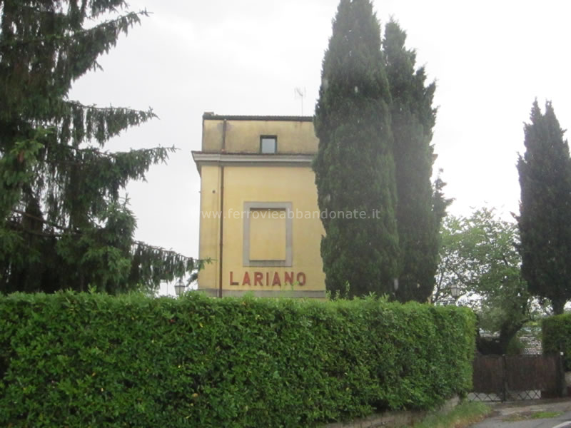 Prospetto laterale del fabbricato viaggiatori della ex-stazione di Lariano, con la denominazione ben conservata (A. Stigliani, 2017)